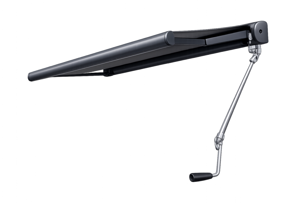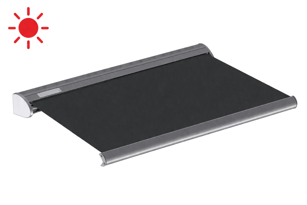 Le mécanisme et la toile sont entièrement protégés dans un coffre en aluminium.